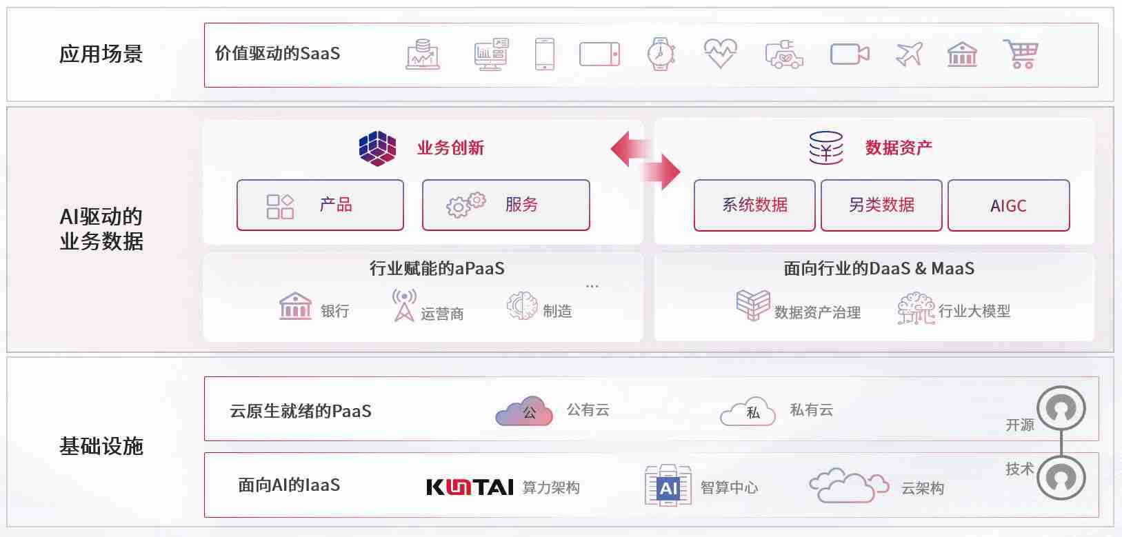数字时代,,,,围绕企业数字化转型的关键要素,,,焦点娱乐数码开创性的提出数云融合战略和技术体系框架,,着力在云原生、、、、数字原生、、、AI原生和信创产业上架构产品和服务能力,,,为处在不同数字化转型阶段的快消零售、、、汽车、、金融、、、医疗、、、政企、、、、教育、、运营商等行业客户提供泛在的敏捷IT能力和融合的数据驱动能力,,构建跨界融合创新的数字业务场景和新业务模式,,助力企业级客户建立面向未来的核心能力和竞争优势,,,全面推动社会的数字化、、、、智能化转型升级。。。