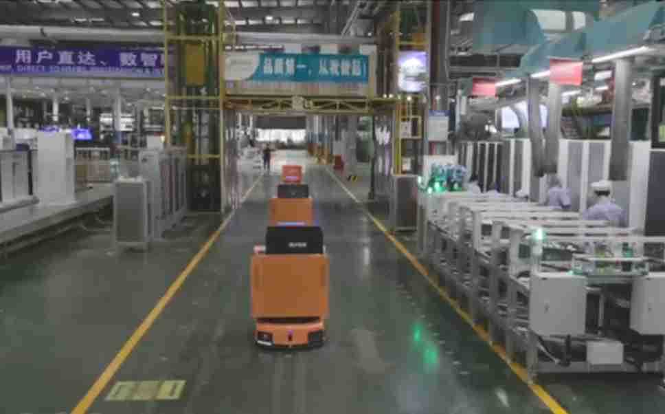 为车载冰箱物流配送打造的智能解决方案,,包含产中物流通过潜伏举升AMR搬运至线边,,产后成品物流智能仓储,,流程包含产中物流智能齐套入库,,,线边安灯叫料AMR智能配送至线边,,,成品入库、、、出库,,,通过无人堆高车机器人,,,,智能仓储管理替代人工作业管理,,,,实现更高存储、、、更高效率、、、、更具柔性化的解决方案。。。